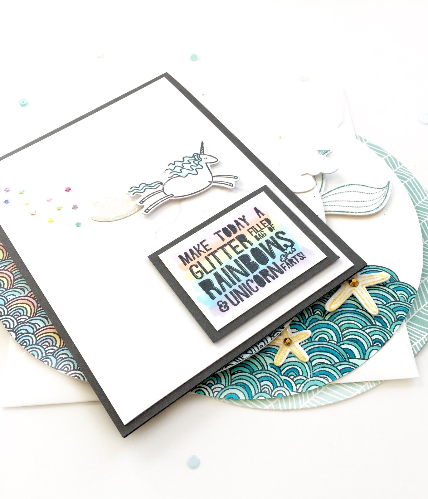 Because I couldn’t stop with just three ideas...as a bonus project, my daughter and I decided to test run the VersaMark Clair Ink with watercolors. Since it is school supply season, we used her new Crayola watercolors and I have admit we were pretty happy with the result….also included lots of Fruity Pebbles Confetti.